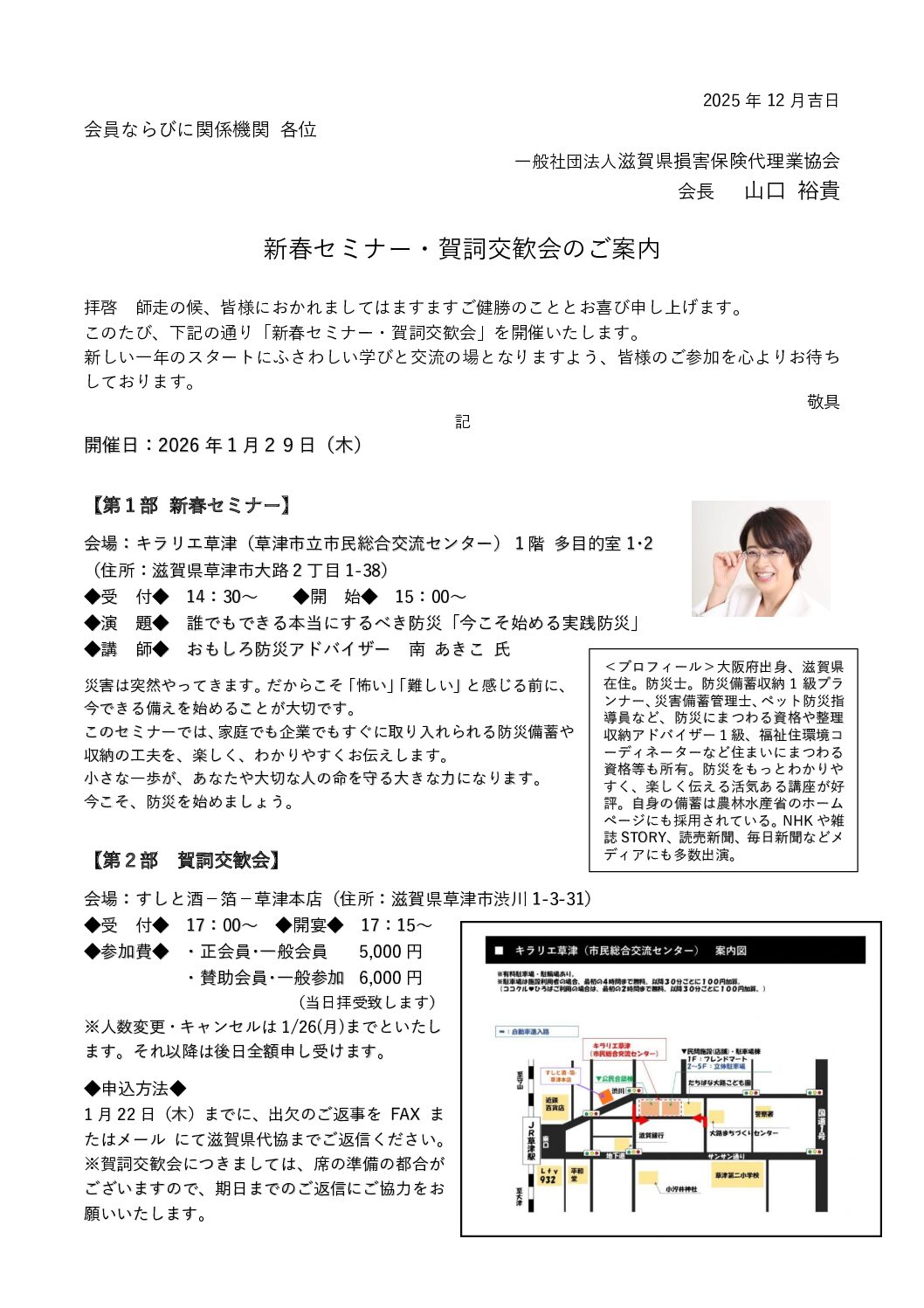 2026年 新春セミナー・賀詞交歓会のご案内 🎍